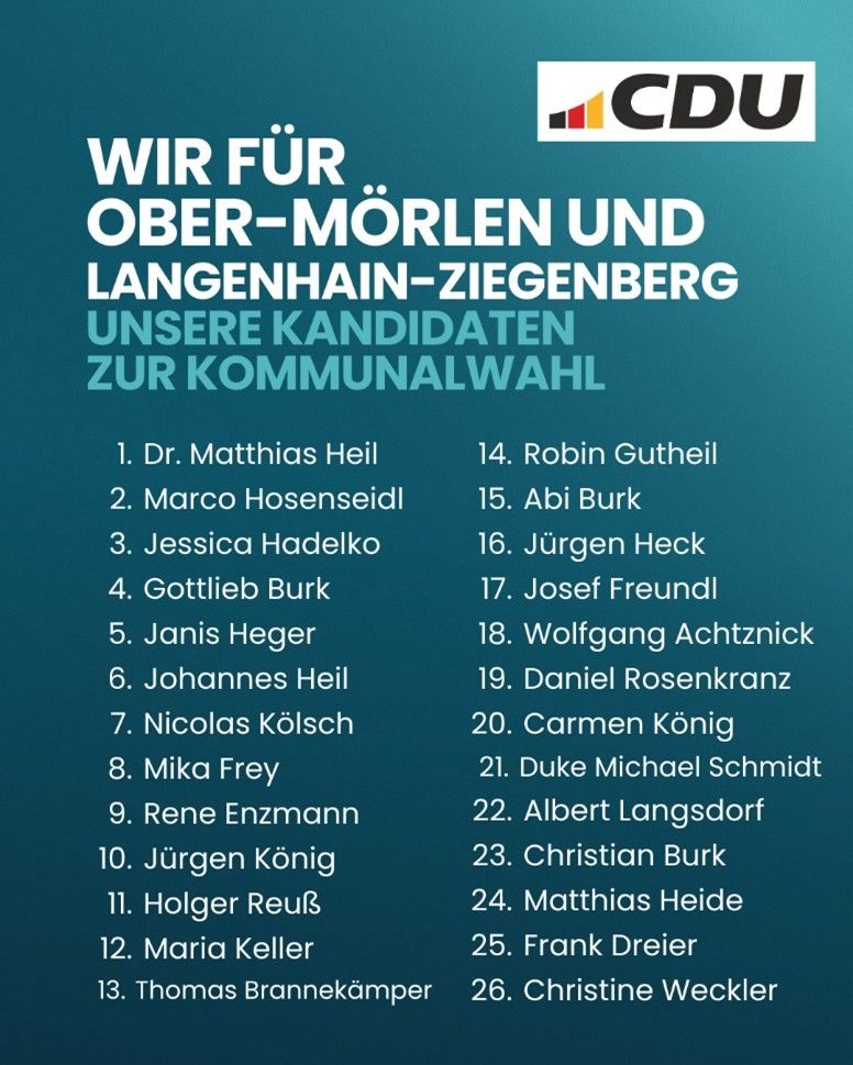 Herzlich willkommen auf den Internetseiten der CDU Ober Mörlen und Langenhain-Ziegenberg.